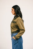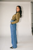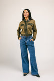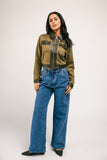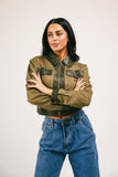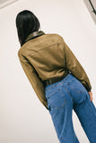 - olive // collared, zipper closure, cropped, snap button closures, breast pockets, lined
