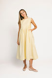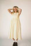 a really special dress we dreamed up just for you– this butter yellow beauty is equal parts polished + practical. with its classic a-line silhouette + comfortable, breezy fabric, it looks as good as it feels. the perfect midi dress for fancy dinners, casual hangs, + any ‘throw on + go’ situation.