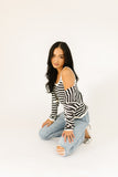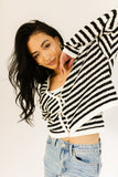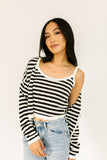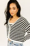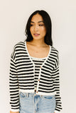 it’s a tank, it’s a cardigan – it’s a tank + cardigan combo. detailed with a retro-inspired black + white stripe pattern, this cropped sweater tank + cardigan set is a spring outfit staple. wear them together or separately to elevate any outfit.