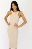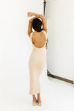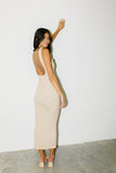 the must-have midi dress for date nights, brunches, + beach walks, this backless ribbed dress is flattering in all the right ways. it’s inspired by the coveted cotton slip dress style but features a higher neckline + a higher-quality design (no shade, but kind of shade).