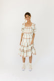- pastel yellow, mint, + red plaid // midi length, square neckline, smocked bodice, puff sleeves, elastic cuffs, fully lined, tiered skirt