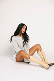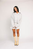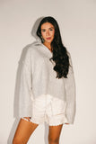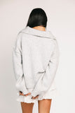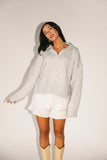 a winter wardrobe essential, this oversized grey collared sweater is perfect for throwing on + going. with its slouchy silhouette + elevated details, it’s great for layering over blouses + dresses, or styling solo with skirts + denim.
