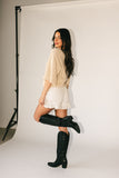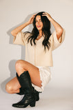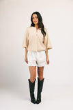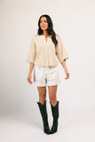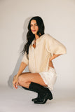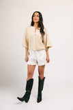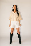 - paired with our pretty little shorts // white *zoco exclusive* + clover denim // medium wash + courtside button mini dress