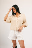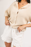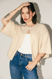 this zoco exclusive short-sleeve cardigan is soft, slouchy, + full of styling moments. with its relaxed, boxy fit + loose drop shoulders, it’s a cardi made for layering over tanks + dresses or styling solo with your favorite bottoms. the perfect neutral button-up knit for every season, situation, + occasion.
