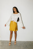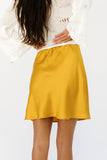an effortless mini slip skirt in the color of the season? yes, please. this stunning marigold mini skirt can take you from formal dinners to farmers' markets with ease. we love styling it with flowy tops in the summer // spring + chunky sweaters in the fall // winter.