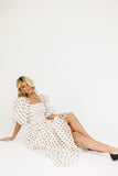 this vintage-inspired puff sleeve midi dress is a zoco hunny essential. featuring a retro-chic polka dot pattern with a slimming smocked bodice + dreamy puff sleeves, it’s the perfect formal dress for brunch dates, garden parties, + bridal showers.