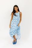 - white + blue floral // maxi length, scoop neckline, smocked top, back button closure, fully lined