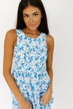 detailed with this season’s most coveted blue floral pattern, this summer maxi dress offers trendiness + timelessness. it has a high neck smocked bodice + a “made-for-frolicking” flowy skirt. the perfect white + blue floral dress for garden parties, brunches, + formal outfits galore.