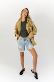 - paired with our no lies ribbed tank + savvy distressed denim shorts