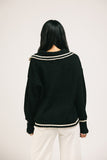 - black // v-neckline, collared, cuffed, drop shoulder, cream hem detailing