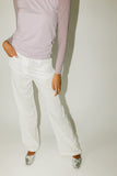- off white // wide leg, one button zip fly, belt loops, pockets