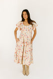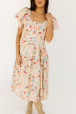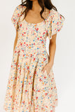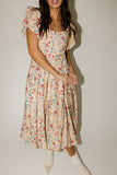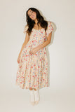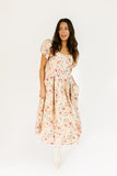 - floral // midi length, scoop neckline, zipper closure, elastic puff sleeves, pockets, smocked back, fully lined