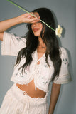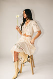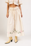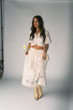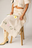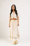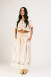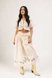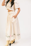 drop jaws + turn heads with this floral embroidered skirt set. a lace-up top + maxi skirt duo, it features dainty lace trim + intricate embroidery. wear the pieces together for an iconic spring // summer ensemble, or separately to elevate any outfit.