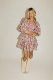 a chic puff sleeve floral mini dress that brings fun + flirty vibes with every wear. the ruched bodice + feminine ruffles add a touch of sophistication, while the ditsy pink floral pattern keep things pretty + playful. a must-have puff sleeve mini dress to add to your wardrobe.