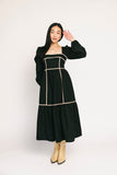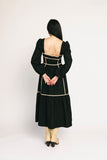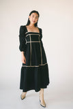 - black // midi length, square neckline, lined bodice, elastic cuffs, beige seam detailing