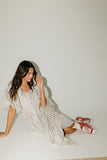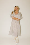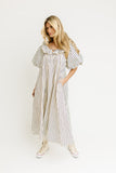 this vintage-inspired puff sleeve maxi dress is guaranteed to be your new go-to. it features a dainty ruffle neckline, dramatic puff sleeves, + a timeless cream + blue striped embroidery. with its relaxed silhouette + flowy shape, it’s the perfect casual maxi dress to pair with your favorite heels, boots, sandals, or sneaks.