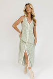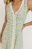 live your best coquette life with this vintage-inspired button-up maxi dress. fitted + flirty, it features a ditsy green floral pattern + dainty lace details. with its working toggle buttons + dreamy silhouette, you can dress it up or down for any occasion.