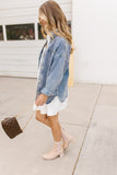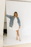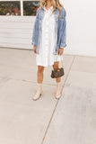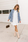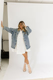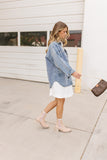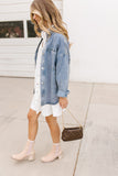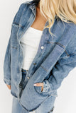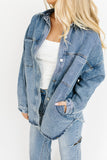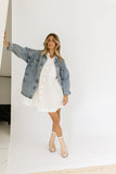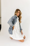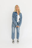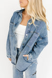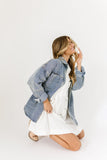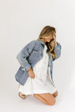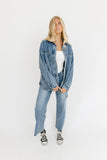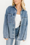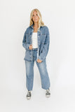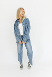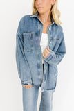 - medium wash // collared, working buttons, breast pockets, seam detailing, rounded hem, pockets