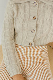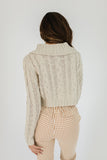 - grey // cable knit, collared, long sleeves, working buttons, cropped