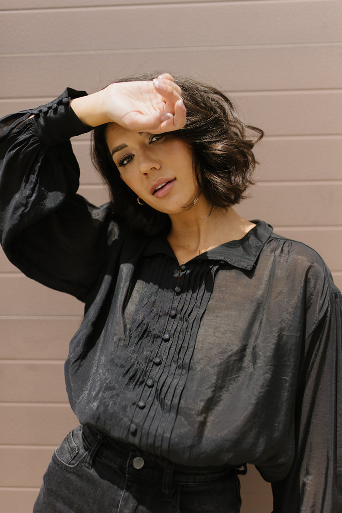 - black // collared, working buttons, elastic hem, cuffed sleeves