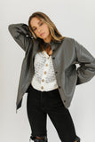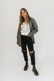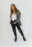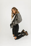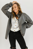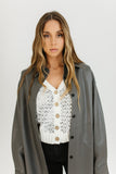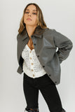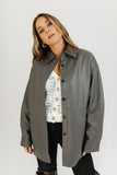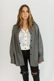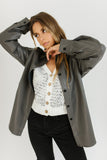 - grey // collared, working buttons, long sleeves, stitching detail, fully lined