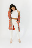 - coral plaid // lapel collar, buttons, faux pockets, fully lined