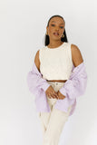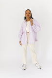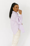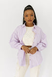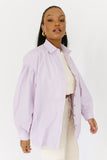 - lavender // collared, breast pocket, buttons, balloon sleeves, cuffed sleeves, raw hem detailing