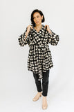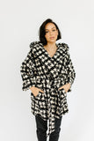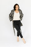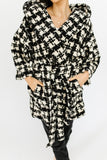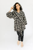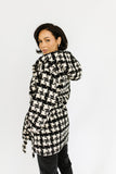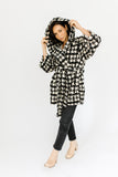 - black + cream // hood, drop shoulder, removable belt, belt loops, pockets