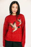 outdoorsy vibes, but make it super chic. this red vintage-inspired duck sweater is the perfect statement piece for any outfit. with its luxe, heirloom look + cozy, worn-in feel, you can easily dress it up or down, day or night.