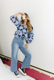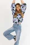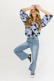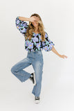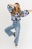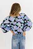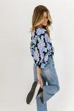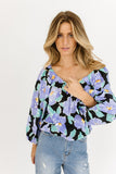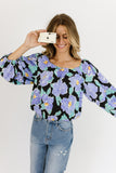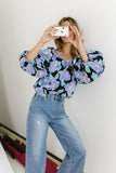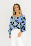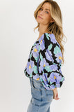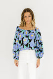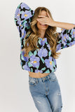 - floral // scoop neckline, long bubble sleeves, elastic hem, keyhole button closure