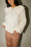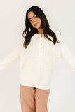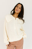 this not-so-basic collared sweater is a vintage-inspired outfit essential. it has a relaxed silhouette, slouchy balloon sleeves, + a trendy button up neckline with a peter pan collar. dress it up with skirts + heels, or down with jeans + sneakers.