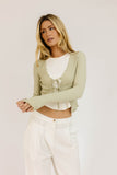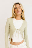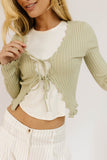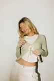 this sweet sage green cardi will effortlessly take you from spring // summer picnics to fall // winter date nights. featuring flirty front tie closures, you can layer it up or style it solo for endless outfit opportunities.