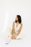 - natural // v-neckline, buttons, pockets, back tie