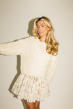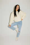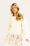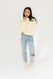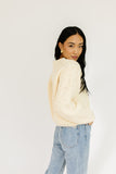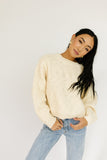 your new go-to slouchy knit, this cream sweater is the perfect addition to any spring outfit idea. it features a thick crochet-inspired weave + has that ideal ‘kinda-cropped’ + ‘kinda-boxy’ silhouette. the perfect not-so-basic sweater to dress up with skirts or down with jeans.
