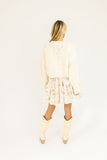 - paired with our silicy distressed denim // louisa ruffle mini dress