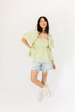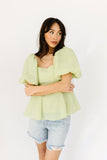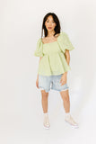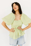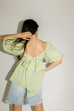 - apple // square neckline, dramatic puff sleeves, elastic shoulders, back tie