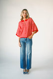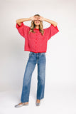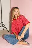 this pink + red striped cardigan is soft, slouchy, + full of styling moments. with its relaxed, boxy fit + loose short sleeves, it’s a cardi made for layering over tanks + dresses or styling solo with your favorite bottoms. the perfect addition to any casual outfit, it's a must-have for every season.