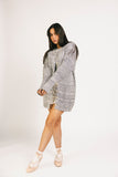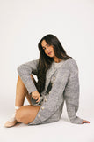 - grey // scoop neckline, marble buttons, drop shoulder, ribbed cuff