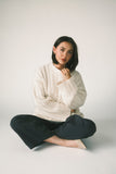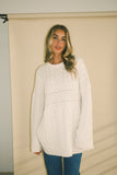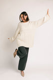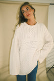 - cream // scoop neckline, cable knit, long sleeves, ribbing at neckline hem, and cuffs