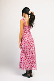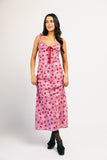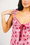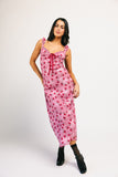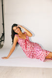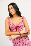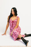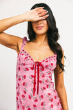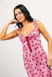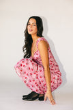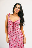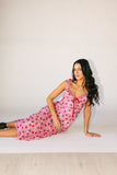 super romantic + extra flirty, this pink + red slip dress is guaranteed to turn heads. with its feminine sweetheart neckline + vintage red floral pattern, it’s a timeless dress you’ll wear over + over again. a must-have for dinner dates, cocktail parties, + spring // summer weddings.