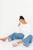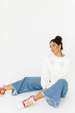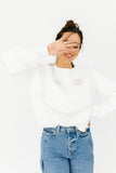 - white // crew neckline, textured smiley face graphic, drop shoulder, balloon sleeves
