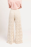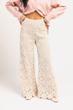 - natural // high-waisted, wide leg, lined, elastic waistband, scalloped hem