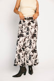 - cow print // maxi length, elastic waistband, asymmetrical seam, belt loops, belt