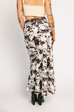 cowgirl-coded + ultra chic, this satin cow print maxi skirt is the perfect statement piece for every season. with its easy silhouette + edgy belt detail, it was made to be dressed up or down, day or night. pair it with a tank + boots for rodeos + concerts, or a sweater + heels for dinner dates + girls' nights out.