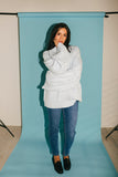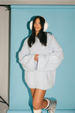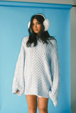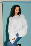 cute, cozy, + luxuriously soft, this baby blue sweater is basically a blanket in disguise. with its slouchy silhouette + cool blue hue, it’s the perfect oversized sweater for layering up or styling solo all season long. a must-have for coffee runs, couch days, + any cold-weather endeavor.