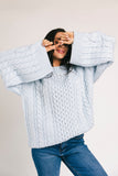 - baby blue // scoop neckline, cable knit, long sleeves, ribbing at neckline hem, and cuffs