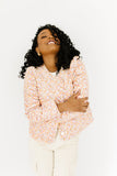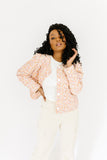 - pink, purple, + yellow floral // quilted, puff shoulder, buttons, pockets, fully lined